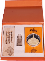 आकर्षक बॉक्स में प्रभु श्रीराम चिन्हित सिक्का, अयोध्या की पावन मिट्टी तथा तुलसीदासजी के श्री राम चरित मानस की कुल 4668 चौपाईयों में से एक चौपाई भी शामिल है।